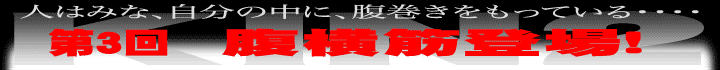 腹横筋・・・・初めて耳にする人も多いかと思う。とりあえず左の絵を見るがいい。いわゆる「割れた」腹筋のことを腹直筋というが、その腹直筋の内側に、筋線維が横向きになった腹巻き状の筋肉があるのが見て取れる。これが腹横筋であるが、その形のとおりこの筋肉は内臓を巻くように囲む、まさに腹巻きの役割をしている。ちなみにこの腹横筋の上を覆うようにして内腹斜筋(筋線維は中央から斜下方向に走る)、さらにその上を外腹斜筋(筋線維は中央から斜上方向に走る)が覆っている。このように腹筋とは縦(腹直筋)横(腹横筋)斜(腹斜筋)各方向すべてをカバーするように構成されている。