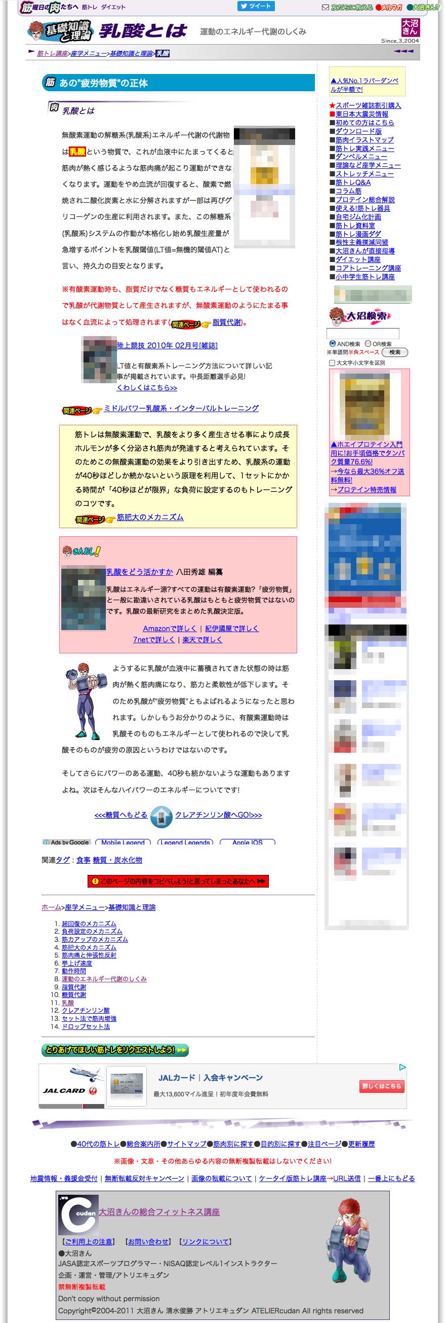 - 2020年5月3日:1にenergy-carbo.html内の「糖質=グリコーゲンが燃やされると、代謝物質として乳酸という物質が多く産生されますが、これが血液中にたまってくると筋肉が熱く感じるような筋肉痛が起こり運動ができなくなります。有酸素運動の場合は血中の酸素が乳酸を処理してくれますが無酸素運動の場合は処理されずにたまってしまうのです。」を移設